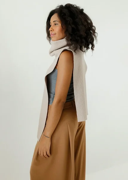 Bouclé wool vest with a collar in beige (RETAIL EXCLUSIVE)