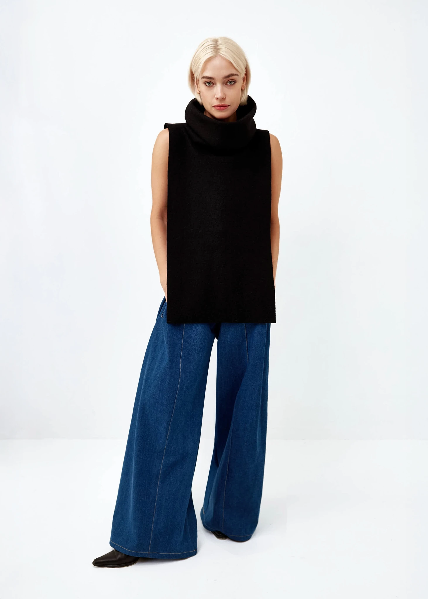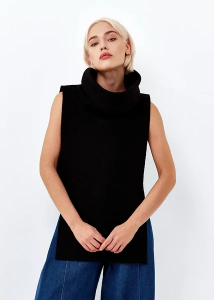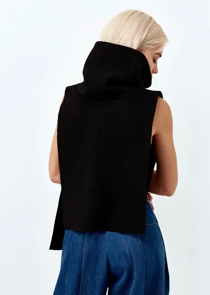 Bouclé wool vest with volume collar in black (RETAIL EXCLUSIVE)