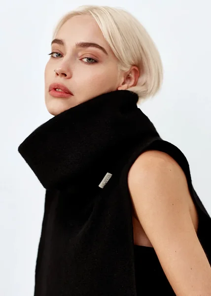 Wear it as a warm structured collar indoors or style it as a statement accessory under outwear, over blazers, or even with a simple tee for that effortless Parisian touch.