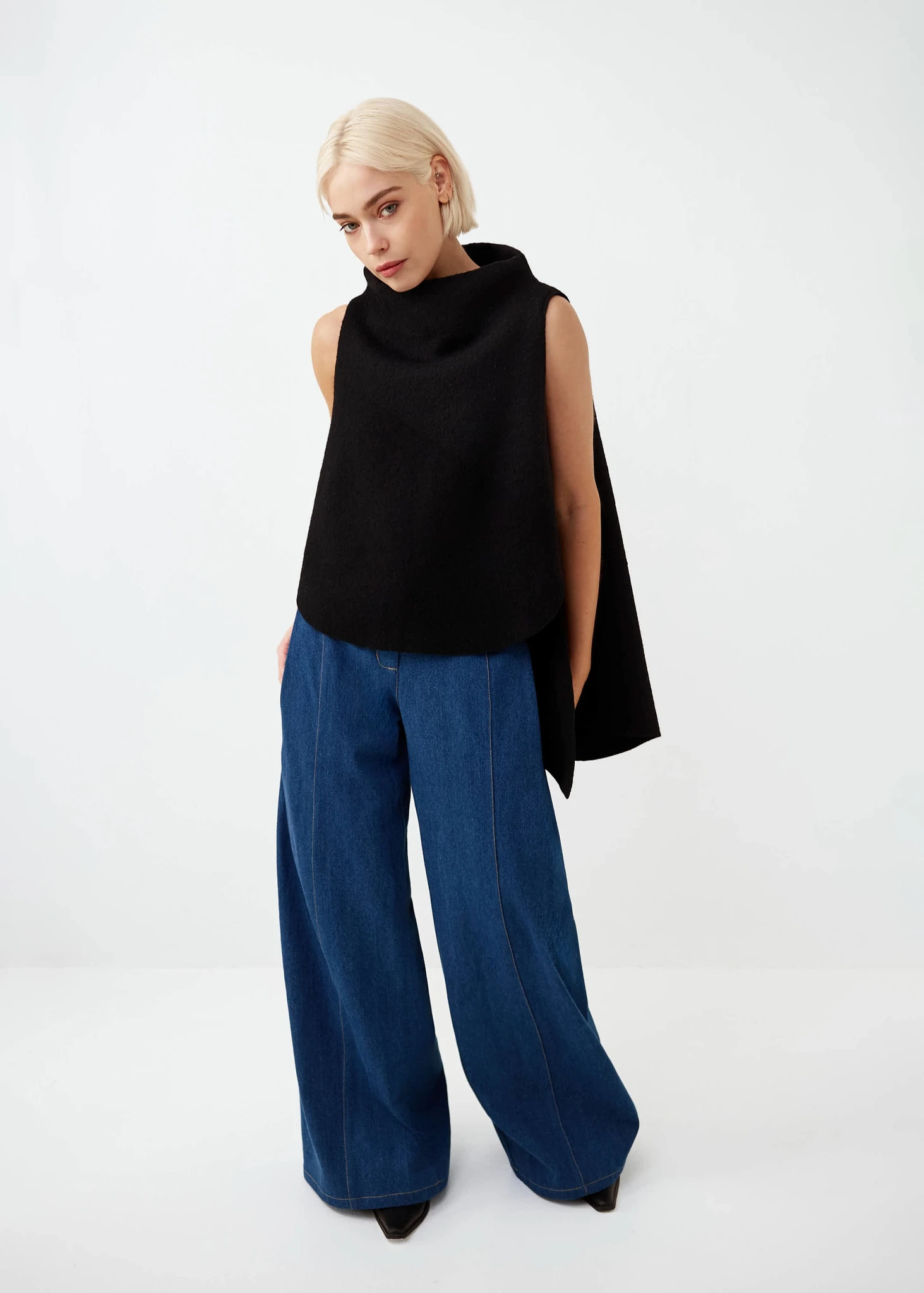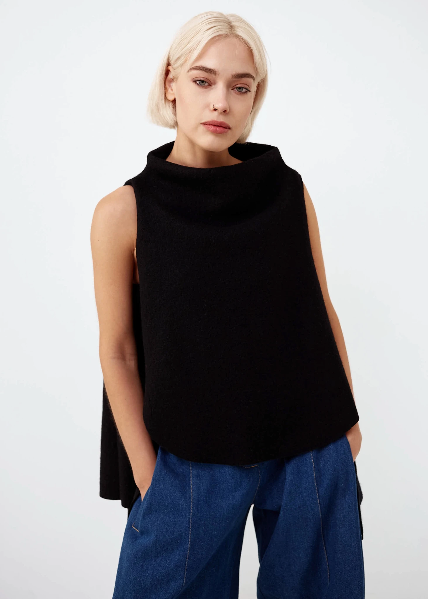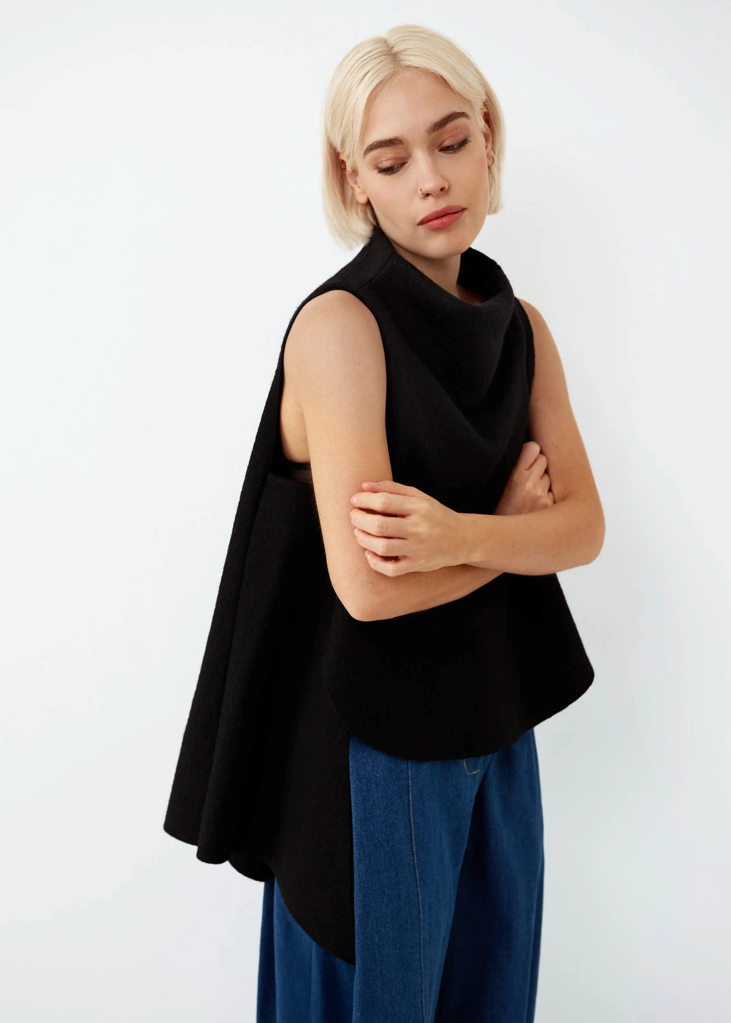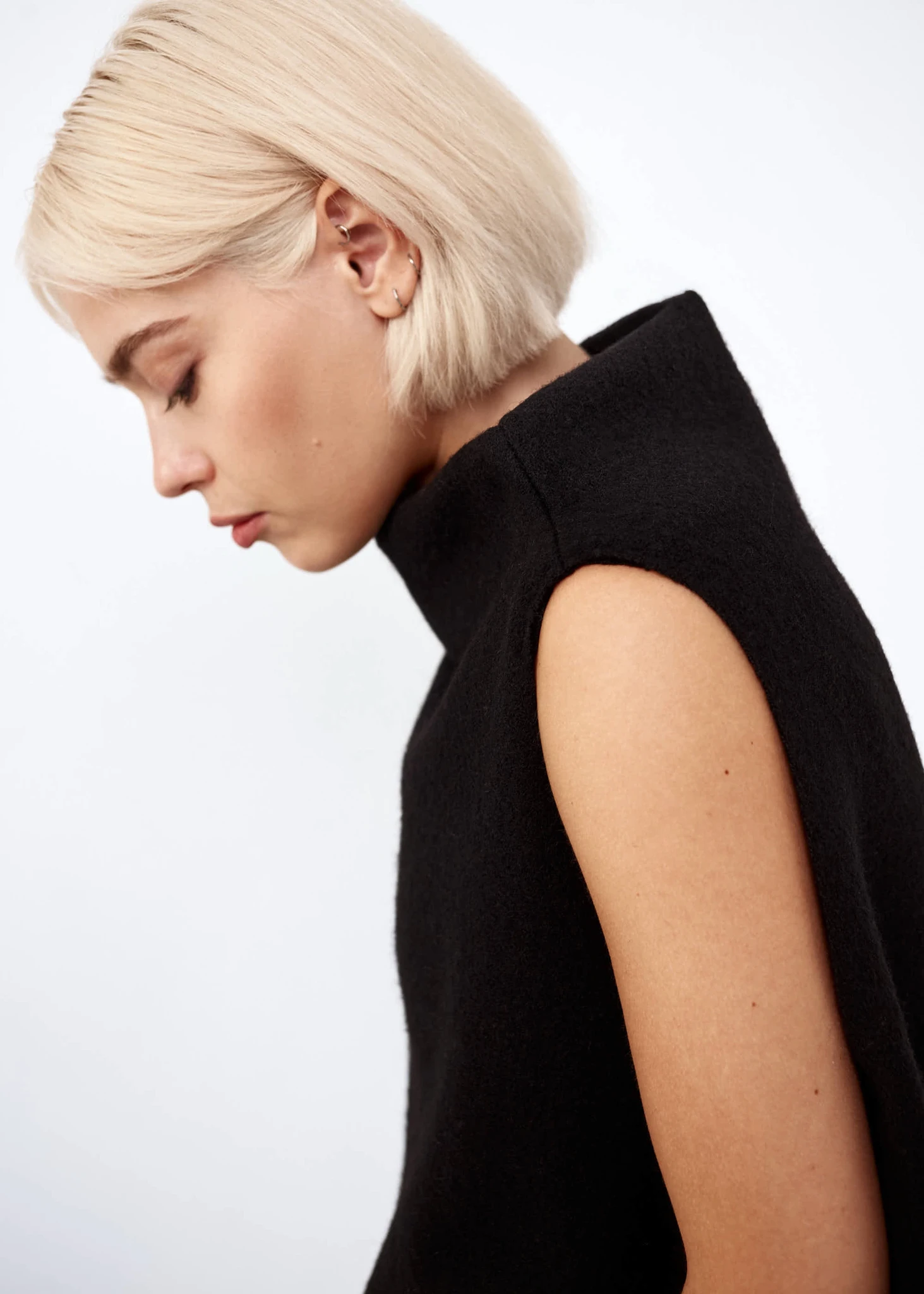 Natural bouclé wool vest in black color (RETAIL EXCLUSIVE)