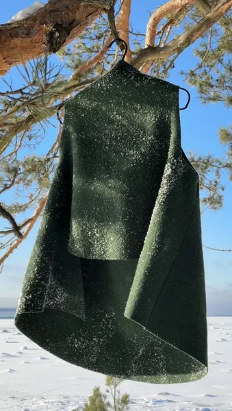 Natural bouclé wool vest in dragon green color