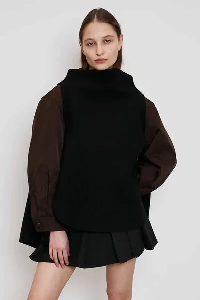 SPECIAL: Natural bouclé wool PROLONGED vest in black