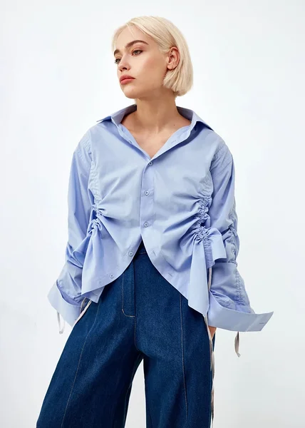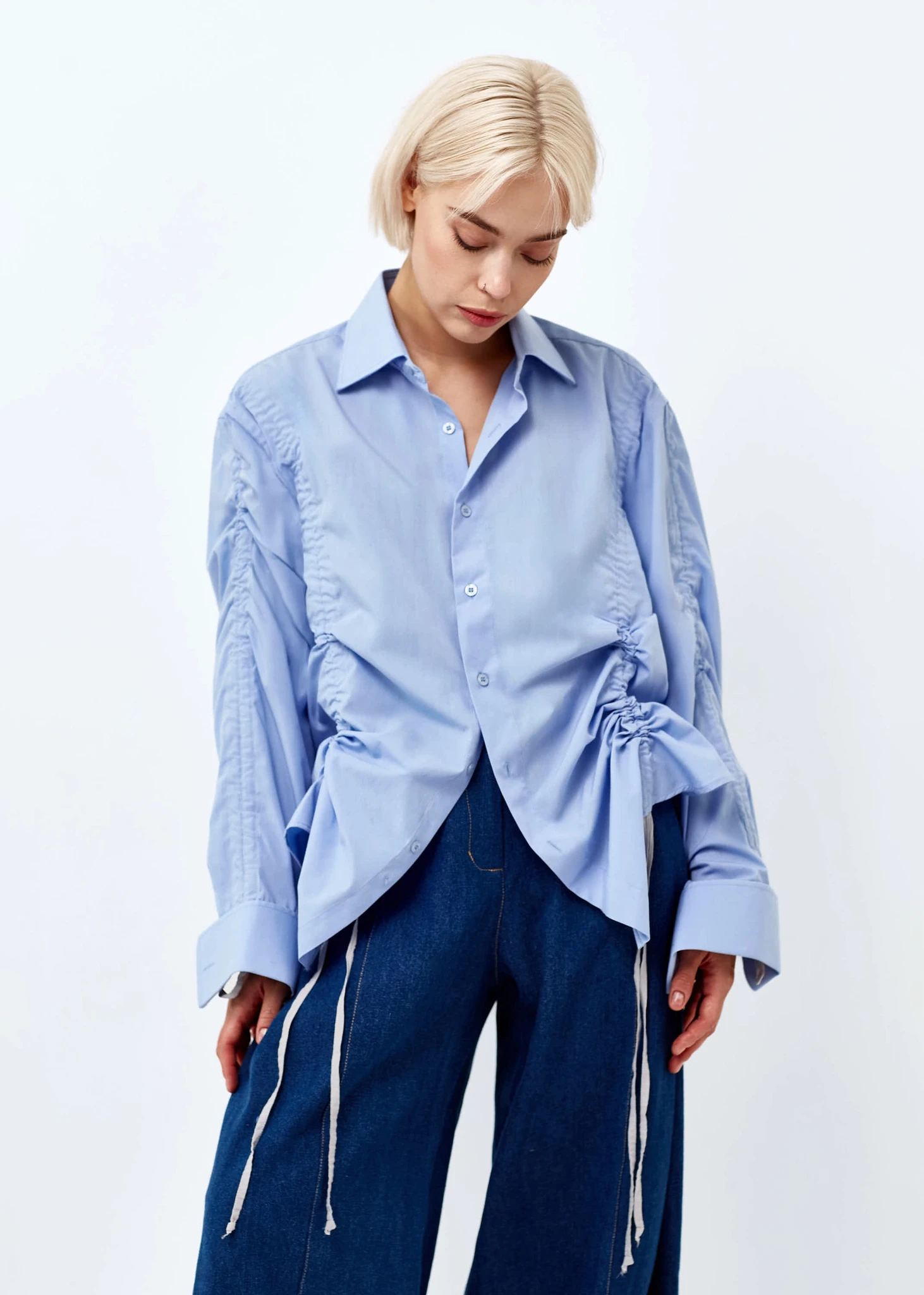 Six adjustable gathers: two at the front, two at the back, and one on each sleeve.