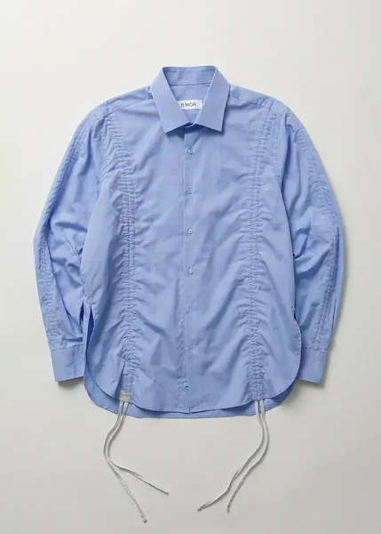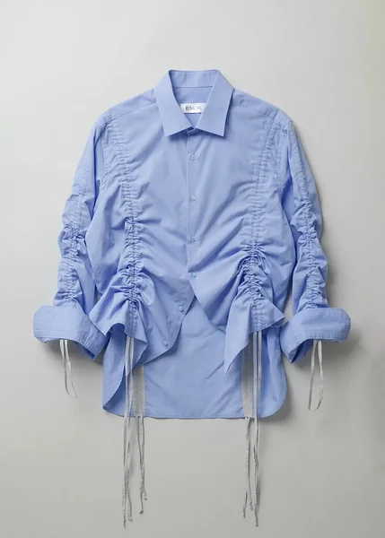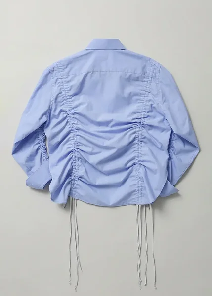 Runway upcycled cotton shirt with gathers in lilac-blue (exclusive)
