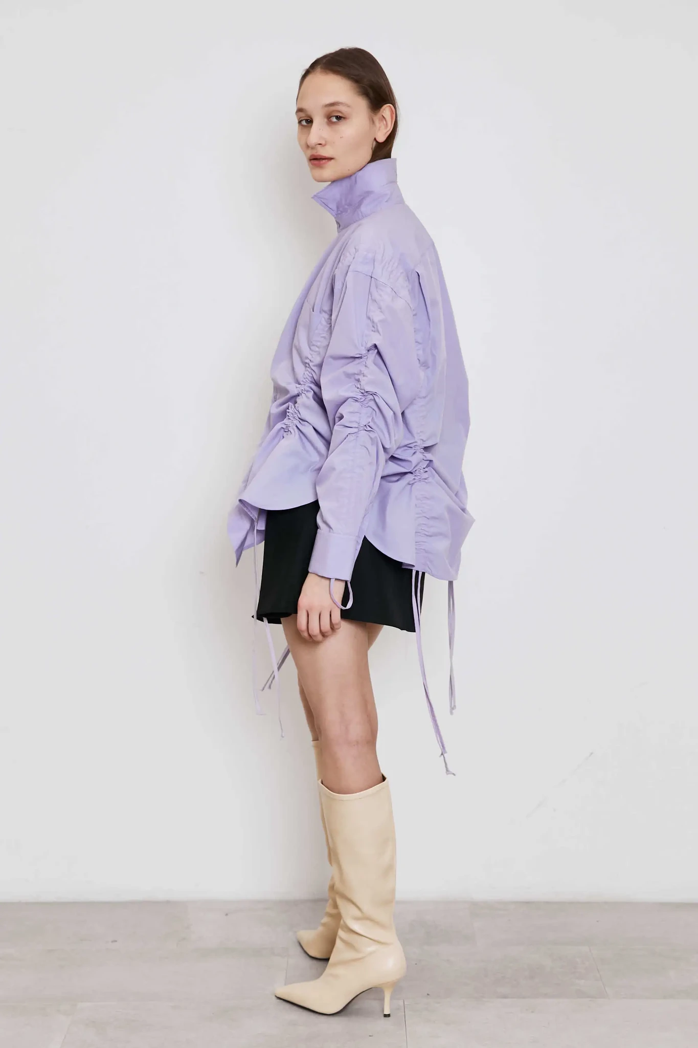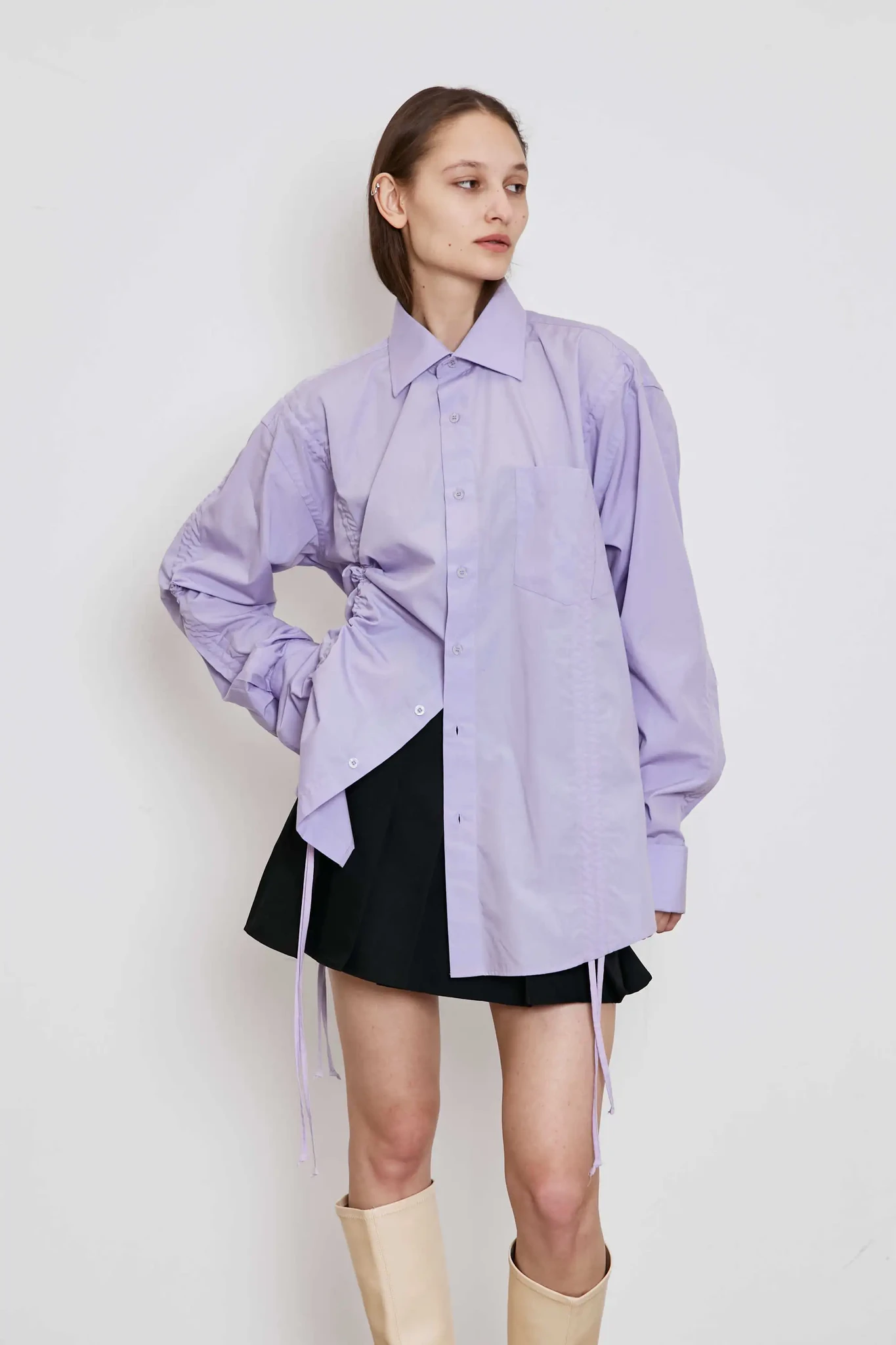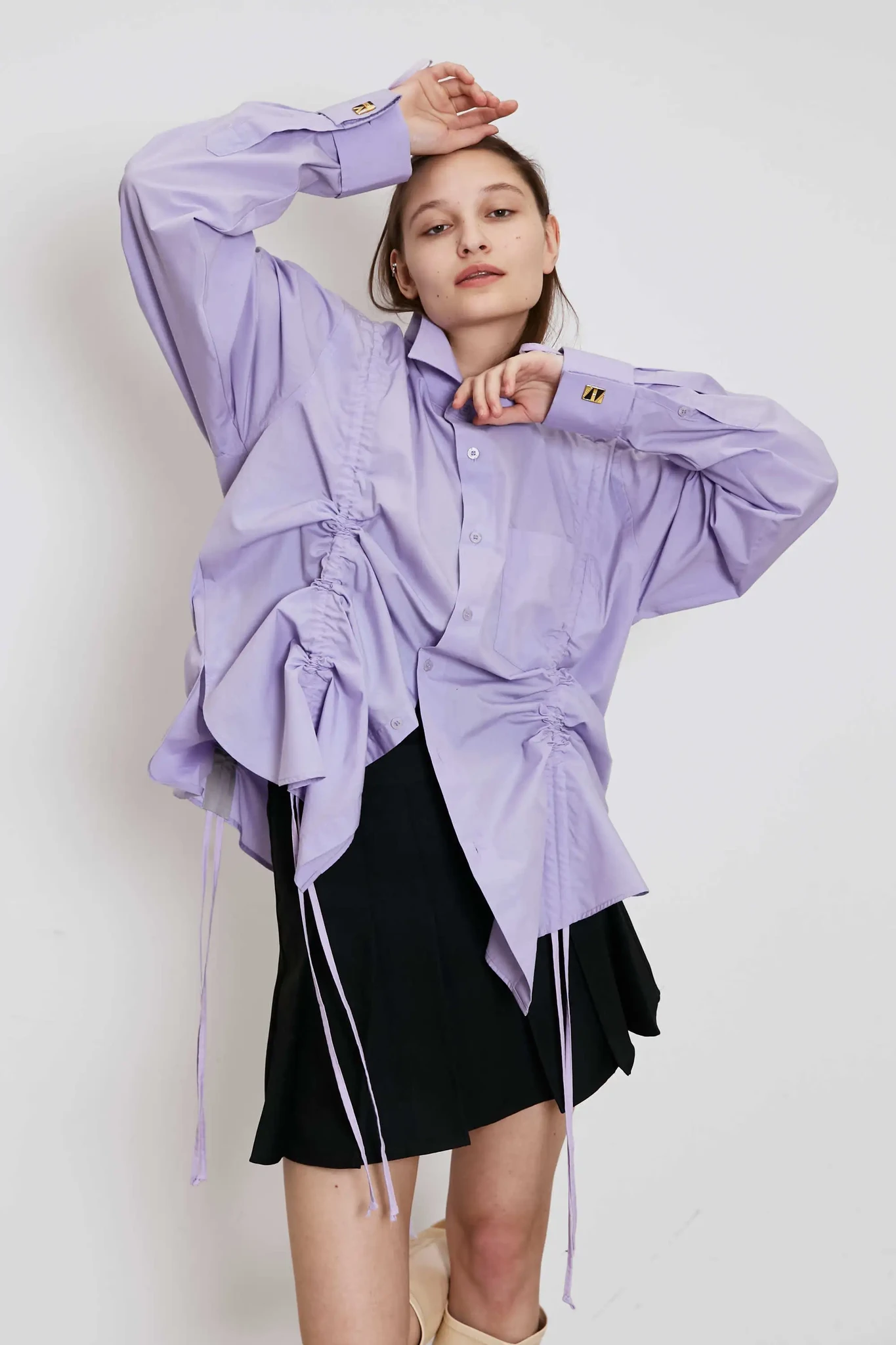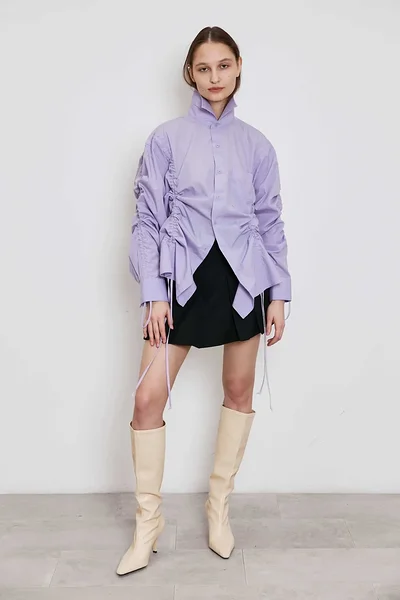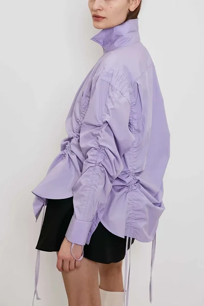 Upcycled cotton shirt with gathers in lilac (exclusive)